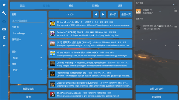 5、在左侧列表中点击第三个选项,在这里玩家可以看到上百种不同的游戏版本以及各种模组、整合包,应有尽有;