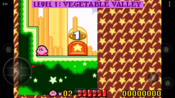 4、通过屏幕左侧的十字键控制卡比进行移动。
