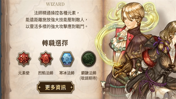 1、游戏设有战士、魔法师、弓箭手和圣职者4个职业,各职业升级后可进行转职或继续修炼本职业。例如,魔法师二转职业可选择烈焰巫师或冰结界术士,而不转职则可继续修炼魔法师技能,升级原技能并学习高级技能。