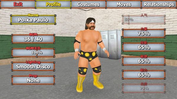 3、支持自定义人物形象,设计出一位别具一格的摔跤明星吧。
