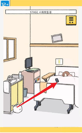 3、然后点击屏幕继续剧情在病床上点击手机。