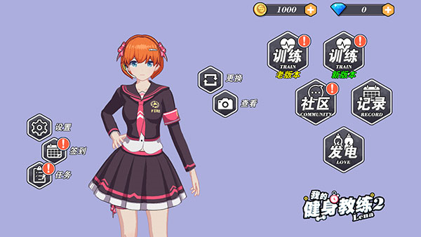 1、我的健身教练2是一款二次元3D健身功能性游戏,游戏中将有三位二次元美少女教练陪同你一起参加训练计划。
