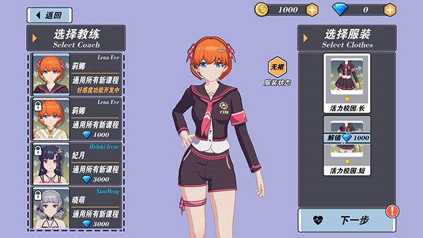 2、其中关于游戏玩法也非常的简单,每位教练都有着不同的训练计划的目标,如莉娜伊芙就有12种训练方式,其中包含热身项目3个、训练课程6个,还有放松计划3个。