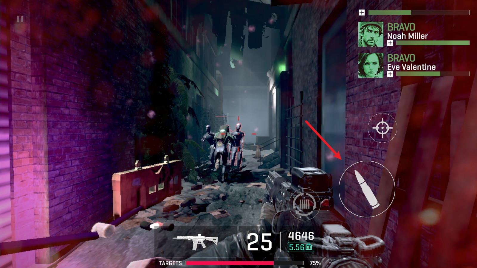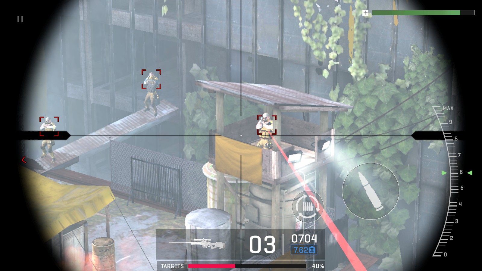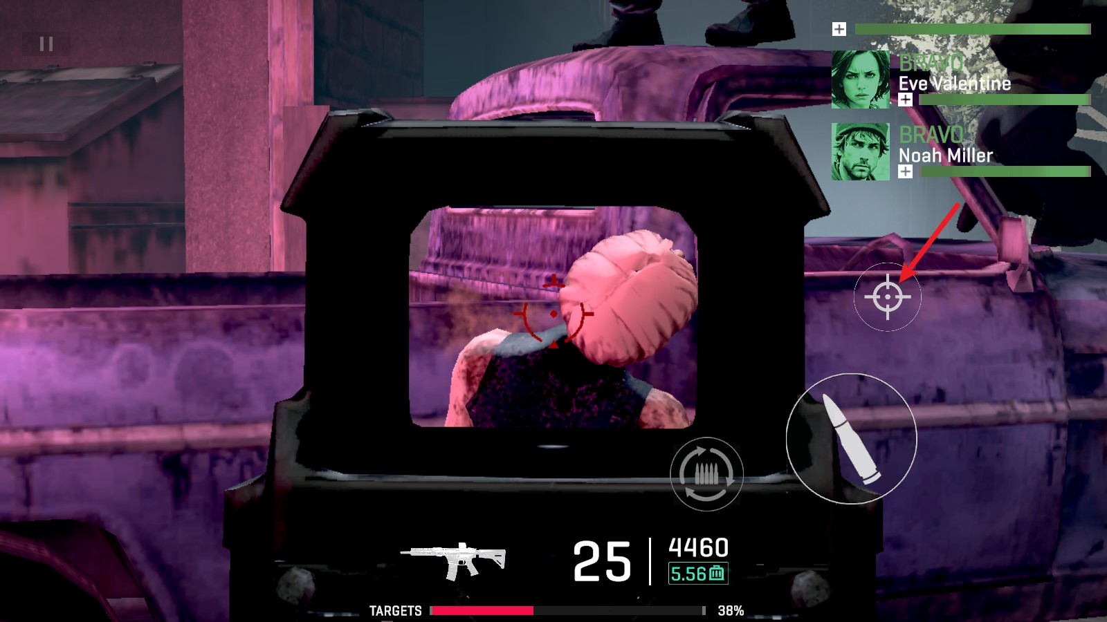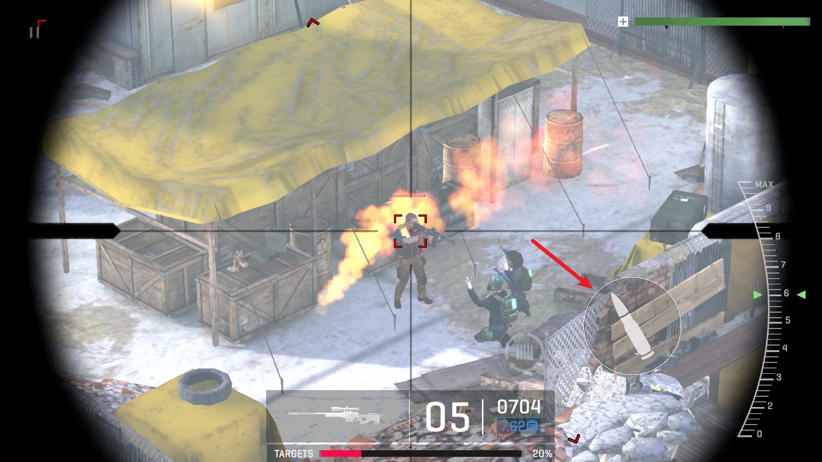 4、部分场景还会切换到狙击枪,拖动右侧的按钮即可开启瞄准镜,进行距离的调整。