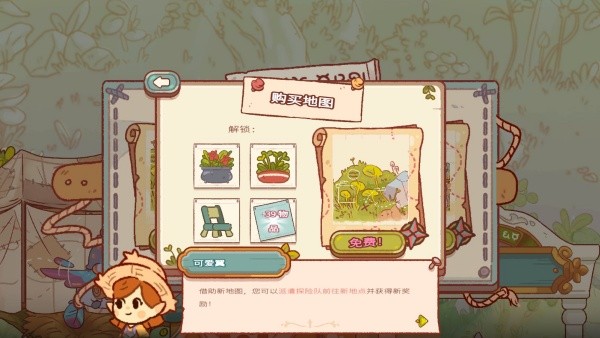 5、之后便可以去探索森林,在这之前你需要找这只小鸟买一张地图,第一张地图免费,购买后会解锁新的家具物品。