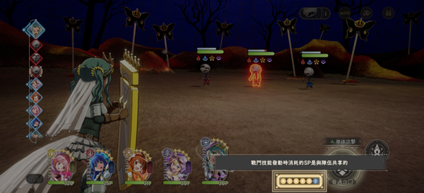 在这次能试玩的范围内,将全体小队共有的 SP 量表优先让给拥有全体或相邻攻击技能的魔法少女使用,MP 蓄满后就施放必杀技…… 靠著这一单纯打法就能轻轻松松过关了。