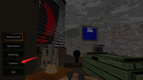 1、打开在本站下载好的游戏,进入到主页面时,点击倒数第二行的optinos选项,这个是游戏的设置选项。