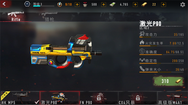 攻击力1544,火灾发生率12.5,准确度68.5%,稳定性250,弹夹大小46,需1010金条解锁。