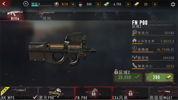 攻击力165,火灾发生率12.5,准确度68.5%,稳定性250,弹夹大小33,需30000现金和290金条解锁。