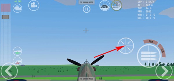 1、当我们进入游戏之后,首先我们需要点击左上角的发动机,飞机就会发动;