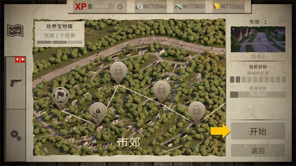 5、然后选择关卡,这里需要完成一个任务,给养宝物箱,然后点击开始;