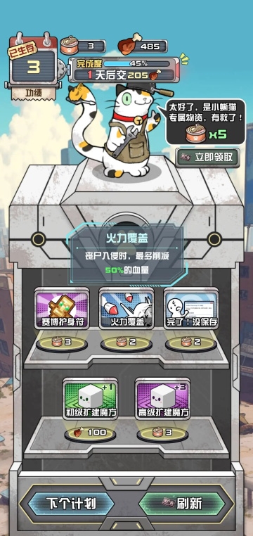 4、火力覆盖 增加对僵尸50%的伤害,(不想点僵尸的可以用,就是头顶飞过来的,罐头多可以买,但是不推荐)