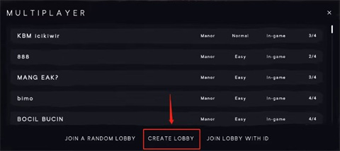 我们与好友联机就选择【CREATE LOBBY】创建房间。