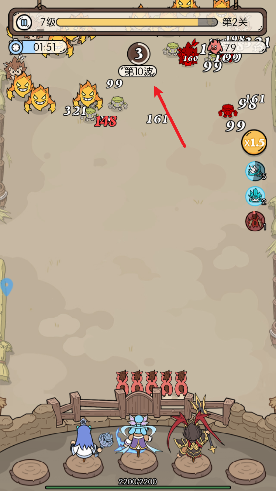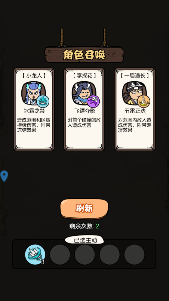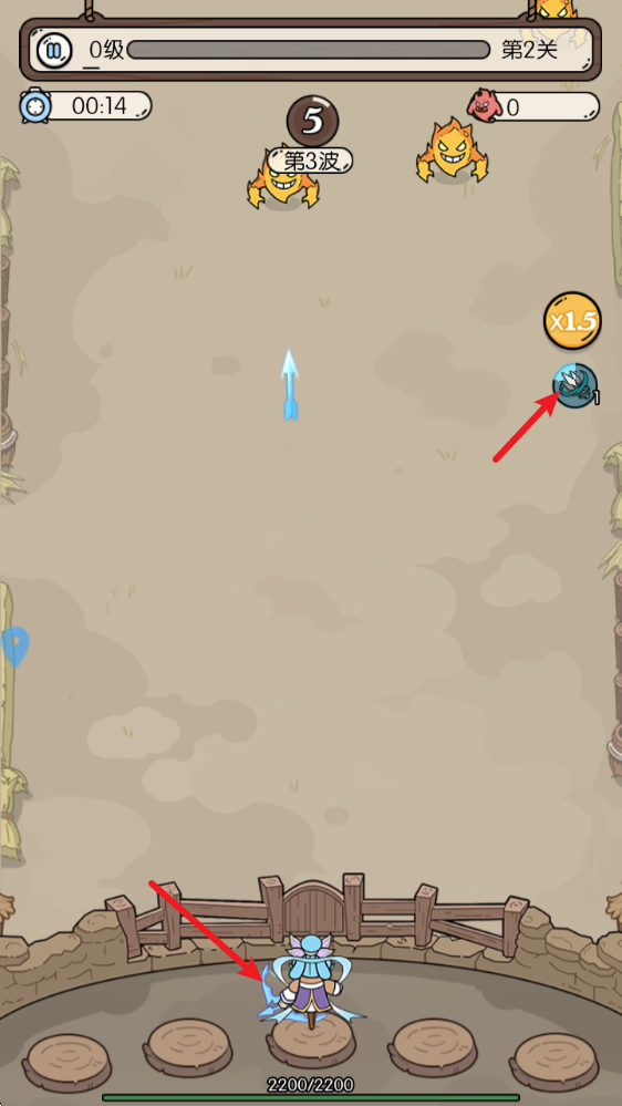 1、开启关卡后,我们选择的角色将会自动的攻击,右侧可以看到技能冷却。