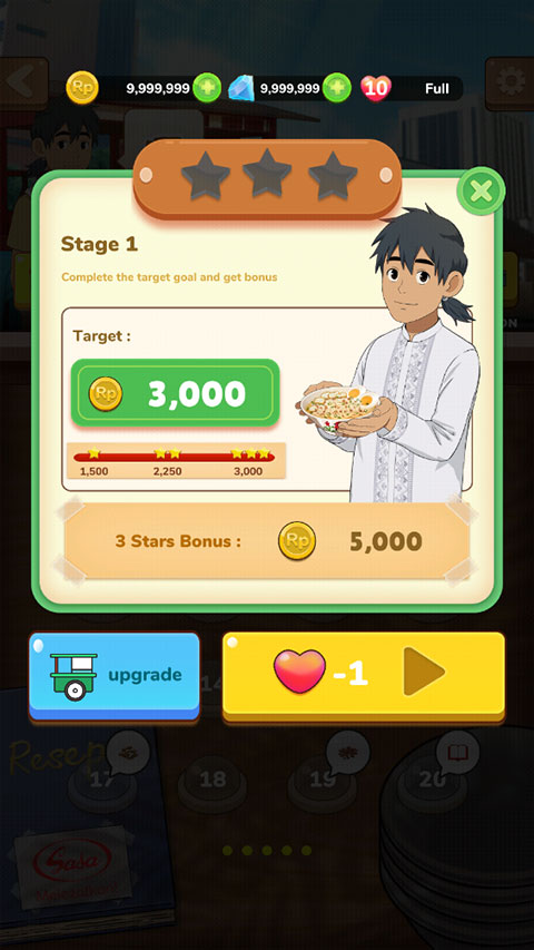 1、玩家进入游戏后会有不同的关卡,通过解锁不同的关卡场景,前往售卖鸡肉粥。