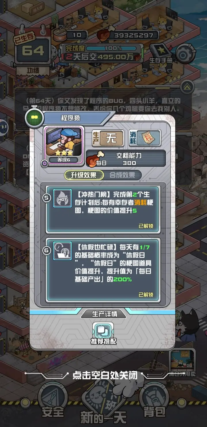 玩法:最快速度合成出一个三星程序猿,且程序猿最高三星,用程序猿的5-6技能增加梗的价格。