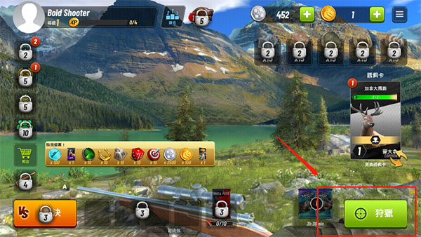 1、安装游戏,直接进入到游戏的主页面中,可以直接点击狩猎开始游戏