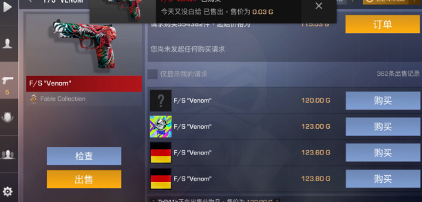 3、卖家看到订单价变化成买家设置订单价的瞬间去出售皮肤,售价为0.1g或者其他低金额,这样买家的本金就基本无损失。此步骤一定要快。