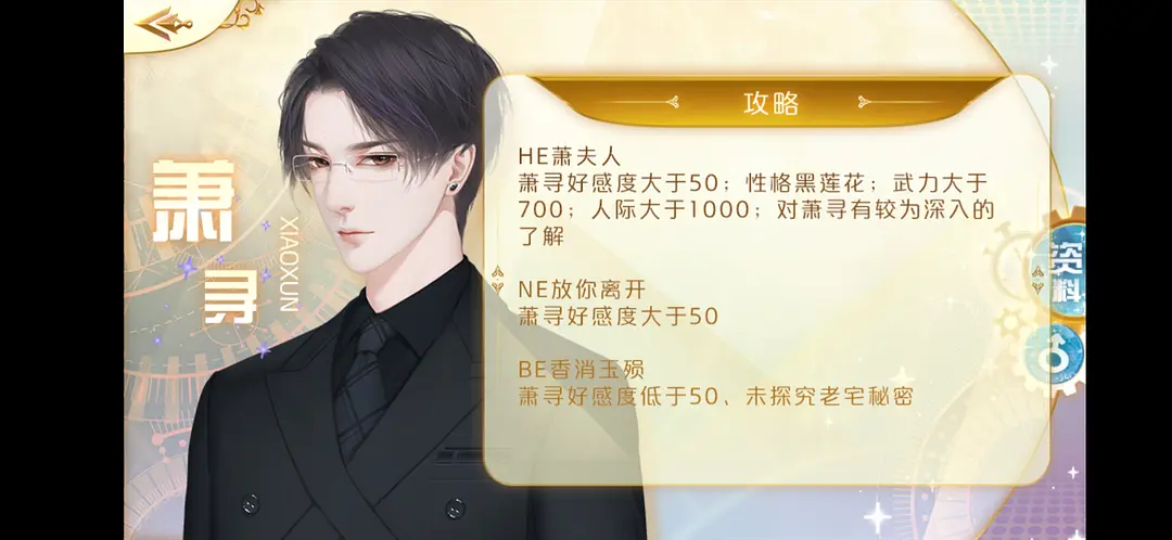 BE香消玉殒:萧寻好感度大于50;未探寻老宅秘密