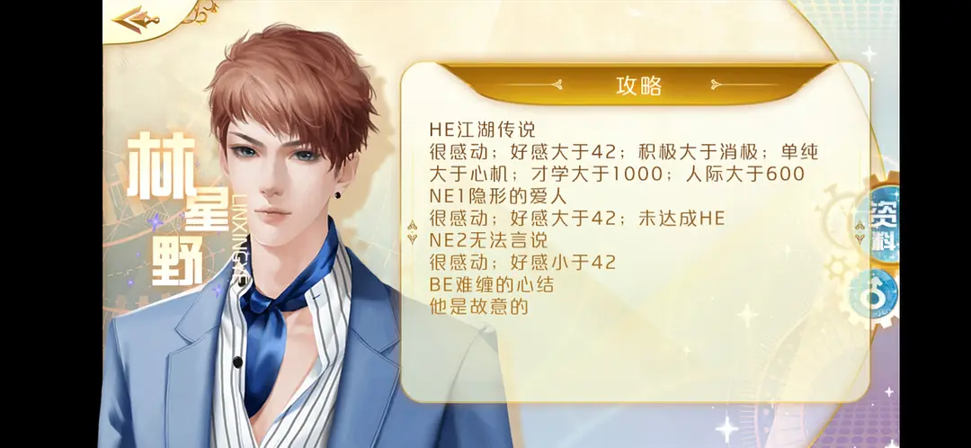 4、林星野 HE江湖传说:很感动;好感大于42;积极大于消极;单纯大于心机;才学大于1000;