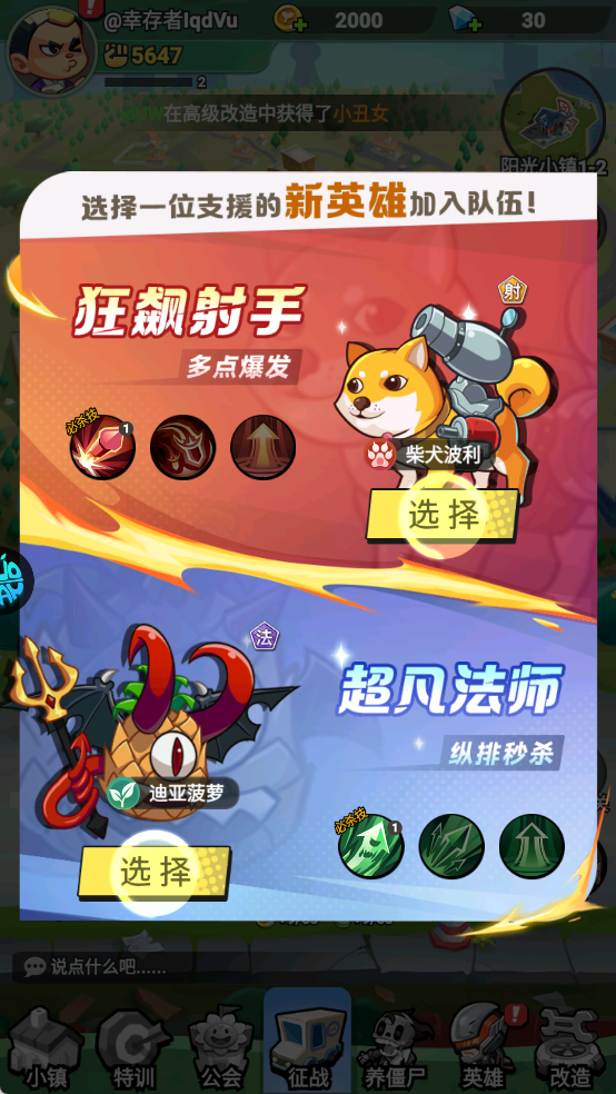 英雄形象采用Q萌风格,如“藕巴”(战士/击杀增伤)、“机械天使”(辅助/全体治疗)等角色设计可爱,僵尸形象则偏向滑稽搞怪,降低恐怖感,增强游戏亲和力。