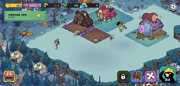 1、游戏开局会安排一段强制指引,带领你熟悉移动、建设和基础操作。教学结束后,玩家便可以着手扩建农田,稳步提升资源产量。