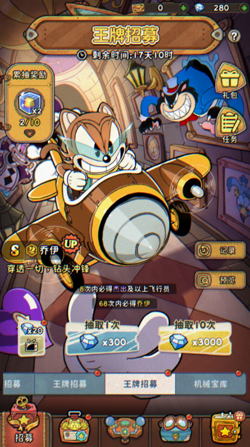 另外新手活动还赠送10连抽「飞行学员招募卡」,可以在普通卡池进行抽卡,普通卡池一样有几率出史诗角色。属于妥妥的白嫖,不要错过!