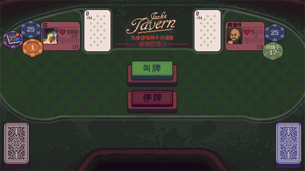2、风险博弈:超过21点(爆牌)会承受全额伤害,而接近21点但未爆牌时,伤害值由双方点数差决定。这种设计迫使玩家在“稳妥求和”与“冒险冲高”间反复权衡。