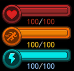 红色的是生命值,黄色的是耐力值,蓝色的是活力值,