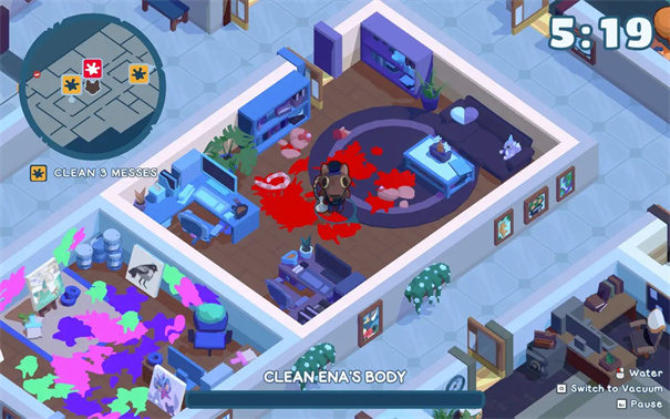 3、游戏里有4种工具,可以用来处理各种脏乱,无论是你故意还是不小心造成的。