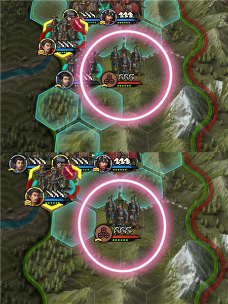 ②受到攻击-15士气,士气崩溃会无法行动,干粮/军粮会恢复兵力与士气;干粮+10士气、军粮+20