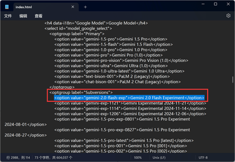 4.1、如果遇到Gemini推出新的模型,而酒馆还没来得及更新,可以采用以下方法手动添加模型名字。下面以需要新增“gemini-2.0-flash-exp”这个模型名字举例。有两个方法可以解决这个问题。最普通的方法是用文本打开一下路径的文件: