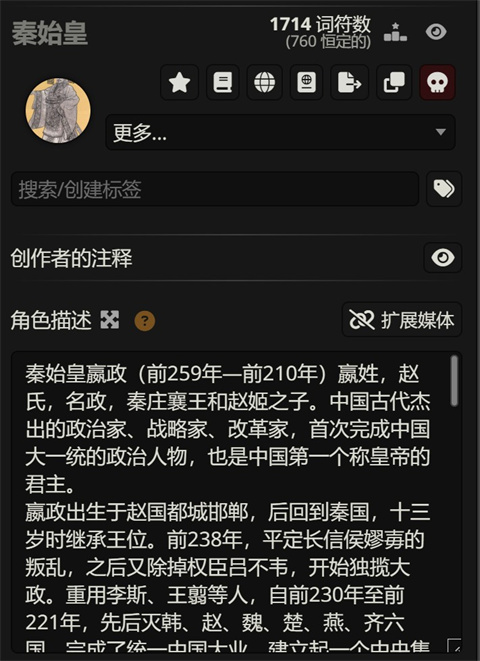 2、人物卡:顾名思义,就是可供聊天的主体对象。通常是1人,当然根据卡面设计,也可以是多人。人物卡通常包括该人物的个性、经历、人际关系、对待事物的态度、口癖、外观等关键描述。是构成该人物的核心因素。我们通常可以在选中人物卡后,看到作者撰写的“角色描述”,这会让你更快速地了解这位角色以及这张卡的大致内容。