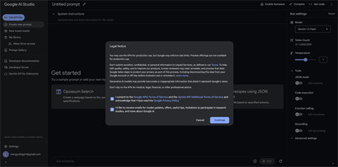 2、开通google api:随后,我们打开Google AI Studio,初次登录根据提示点击Continue即可。