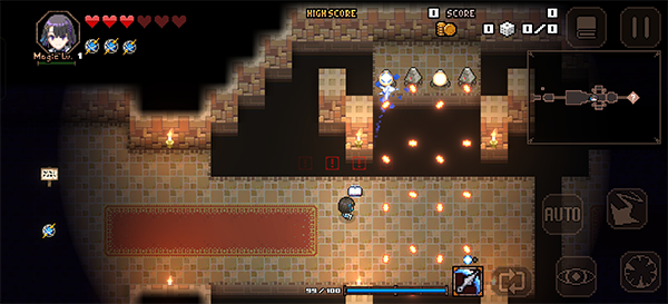 1、探索地下城: 游戏采用双摇杆操作模式,玩家可以使用左摇杆移动,右摇杆瞄准,自由控制角色移动与射击。每次进入地下城时,地下城的结构都会发生变化,玩家需要探索这些随机生成的地下城,击败敌人以获得经验和物品。