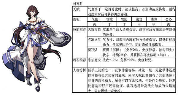 冰系最强法师,拥有很强的机动性以及生存能力,以及多个aoe技能,被动可以群体减法防,对于新手小伙伴们来说是一个非常好用的角色了。