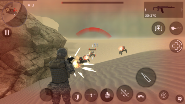 4、游戏使用了多种现代战争武器。打怪时可以使用防护盾和飞行器进行辅助攻击;