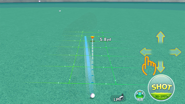 4、移动控制区域至预定的目标位置后,通过设置合适的击球强度,准备开始挥杆。
