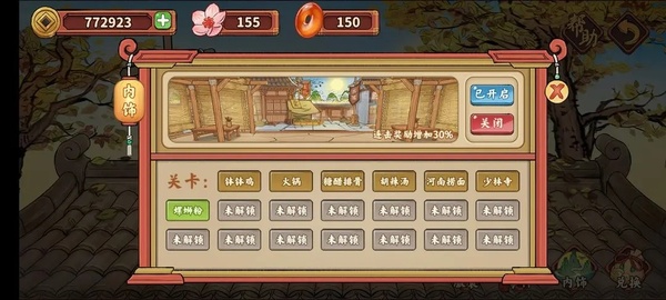 首先跟随主线完成关卡,用铜币升级食材与厨具从而达到新关卡。完成主线解锁日常(可得大量铜币)与事件(可得中国结兑换服饰)。