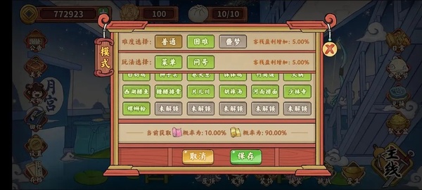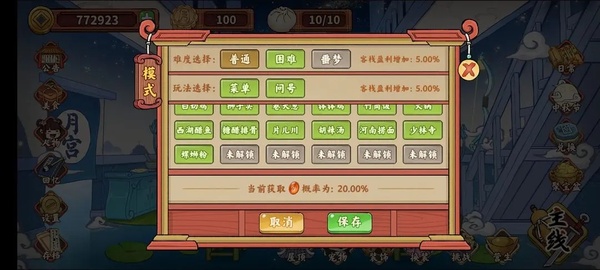 营生模式小齿轮可自选(自己手动选择关卡并保存)或随机关卡(选择哪些关卡随机出现),难度目前只有普通跟困难供选择。