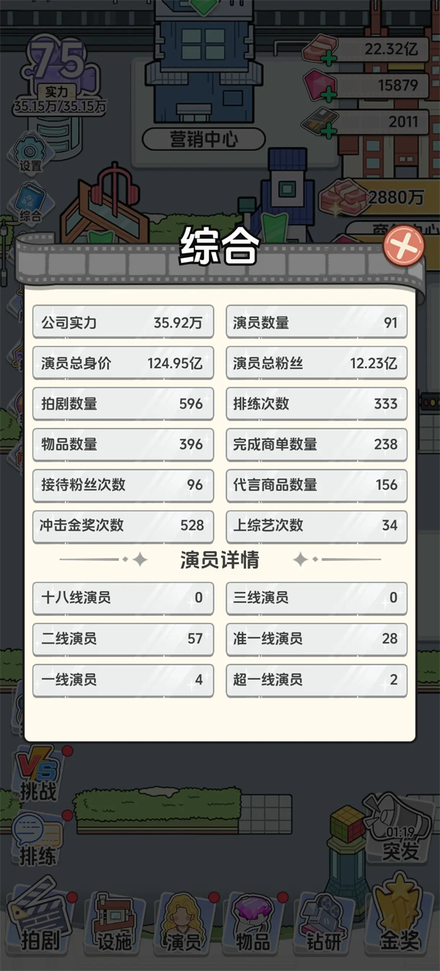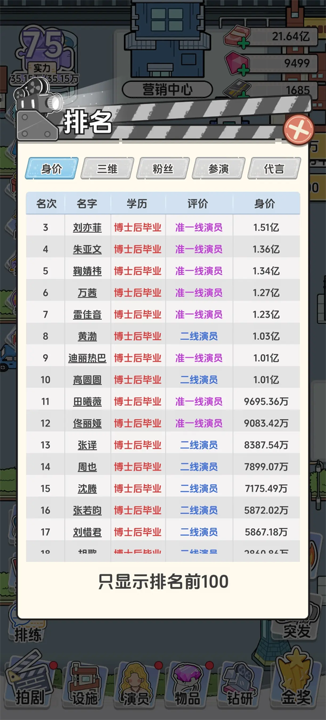 3、玩家需要为每个演员创建一个个性化的设置,以帮助演员提高知名度,扩展演员并增加道路。