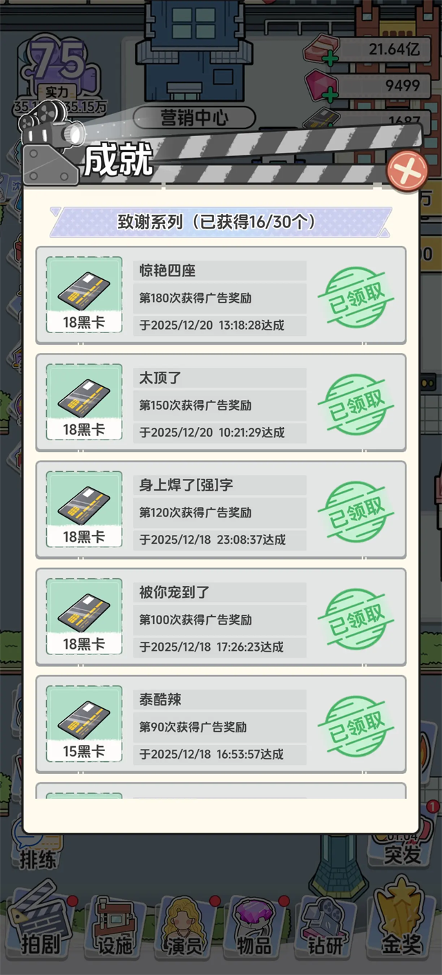 2、设备与场景升级:花费游戏内资金升级拍摄设备,解锁更高级的摄像机、麦克风等器械,同时改善拍摄环境提升视频质量。