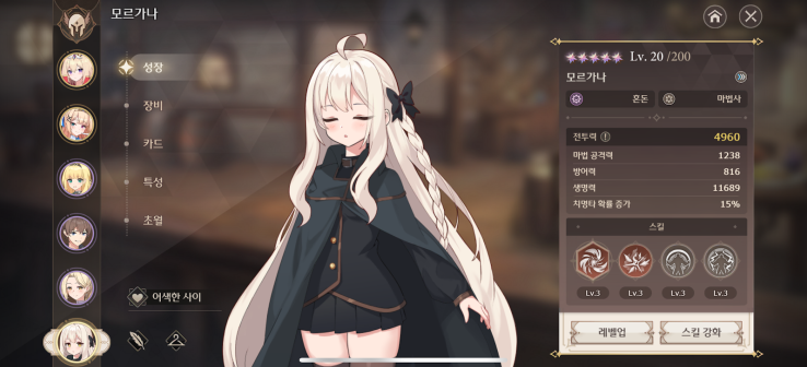 在『成长』中,您可以查看角色的基本信息(等级、等级、属性、职业、能力、技能),并进行升级、等级继承、技能强化。
