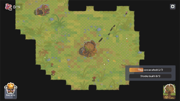 3、探索更广阔的领域,发现更多的食物和资源,并建造自己的巢穴,吸引更多的蚂蚁。