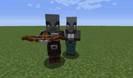 掠夺者是使用村庄更新中加入的弩进行远程攻击的敌人,而卫道士会拿着斧子冲向我们进行近战攻击。可以说他们两个是主要造成物理伤害的战士。