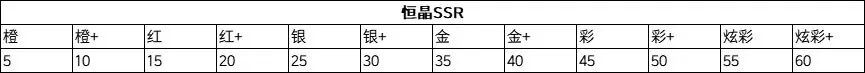 SR和钻石SSR最好可以拉满,当期活动恒晶英雄尽力而为。贴一下每个品质加多少百分比。