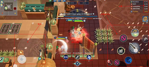 玩家在出门对战后,可以通过左边的轮盘控制英雄移动,通过右边的图标控制英雄释放技能和普攻。