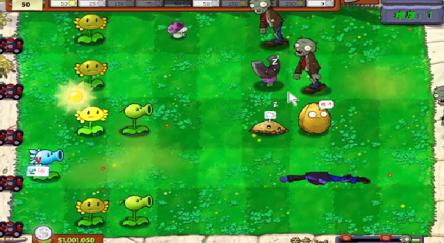 7、同时在易受攻击的位置布置坚果类植物作为防线。注意阳光的获取,优先种植摸鱼向日葵获取 “摸鱼道具”,