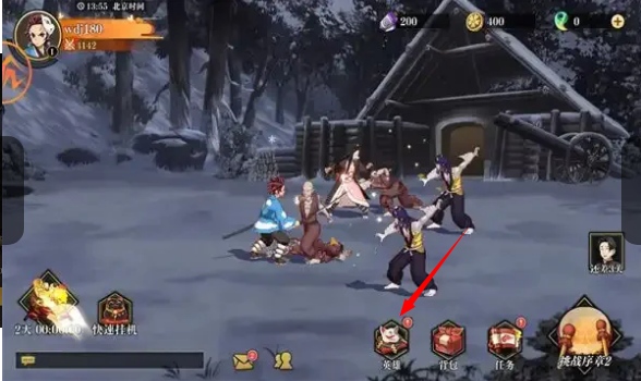 1、首先在无上之弦鬼月的游戏界面中点击下方的“英雄”