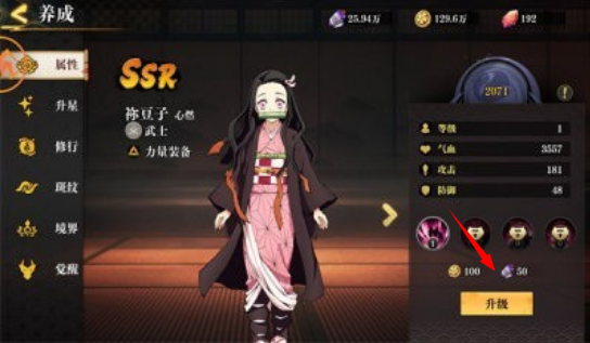 2、接着玩家就可以在打开的角色界面选择要升级的英雄